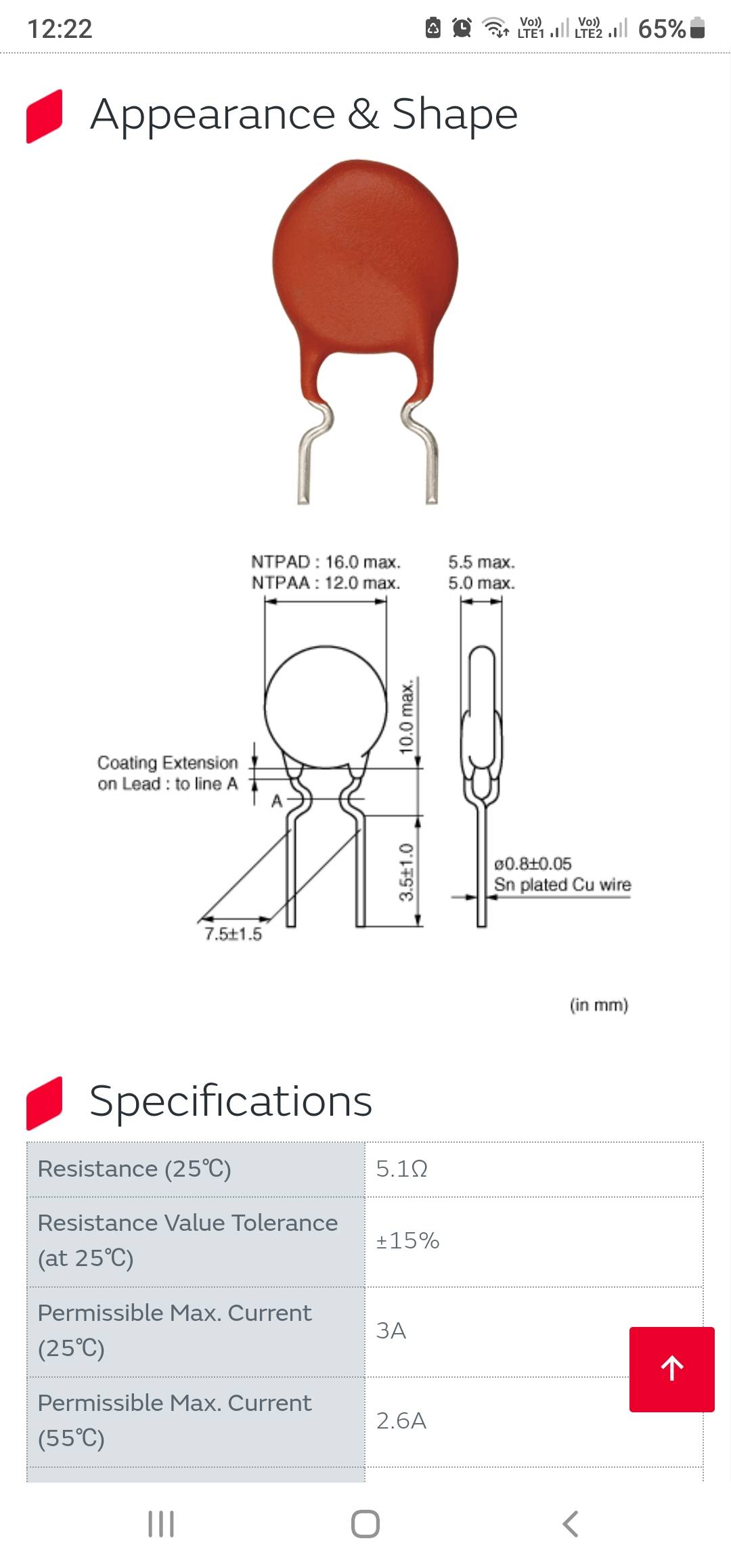 NTPAD5R1LDNB0 MURATA NTC 5R1 14MM