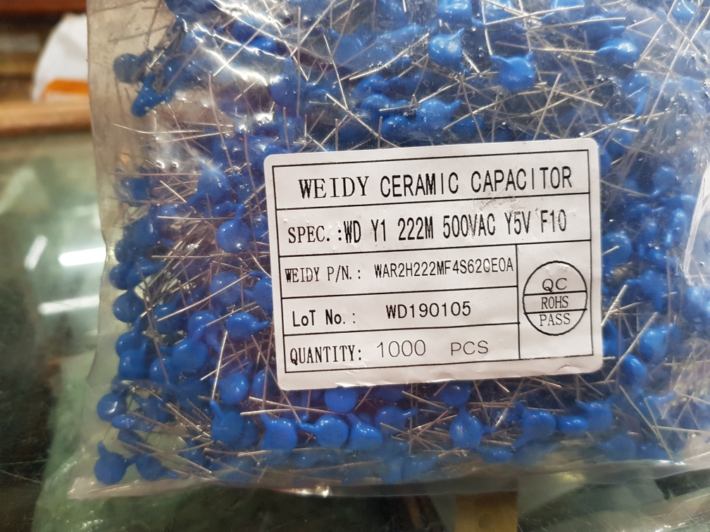 WEIDY CERAMIC CAPACITOR WD Y1 222M 500VAC Y5V F10 2K2 500VAC X1Y1